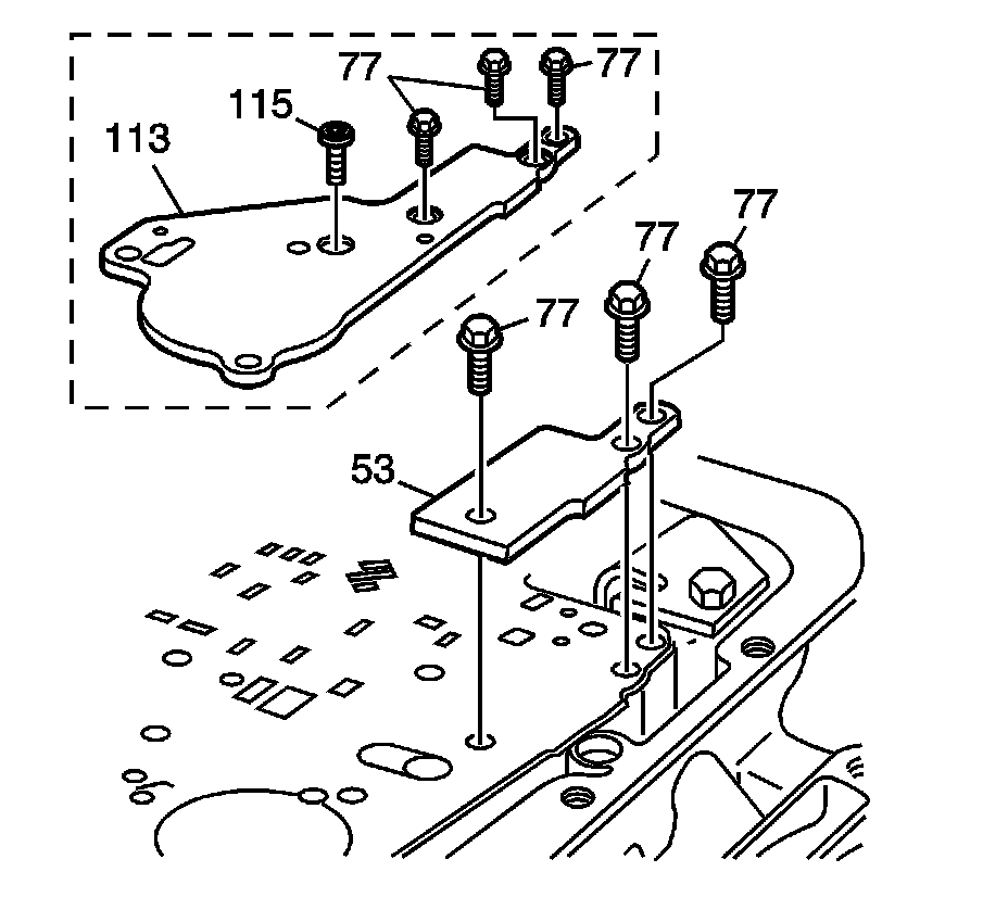 1. Inspect the valve body spacer plate and the solenoid screens (49, 50) for damage or debris.Replace the solenoid screens (49, 50) if necessary.