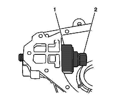 1. Install the J29369-1 (2) and the J2619-01 (1) to the inboard or oil pan side seal as shown.