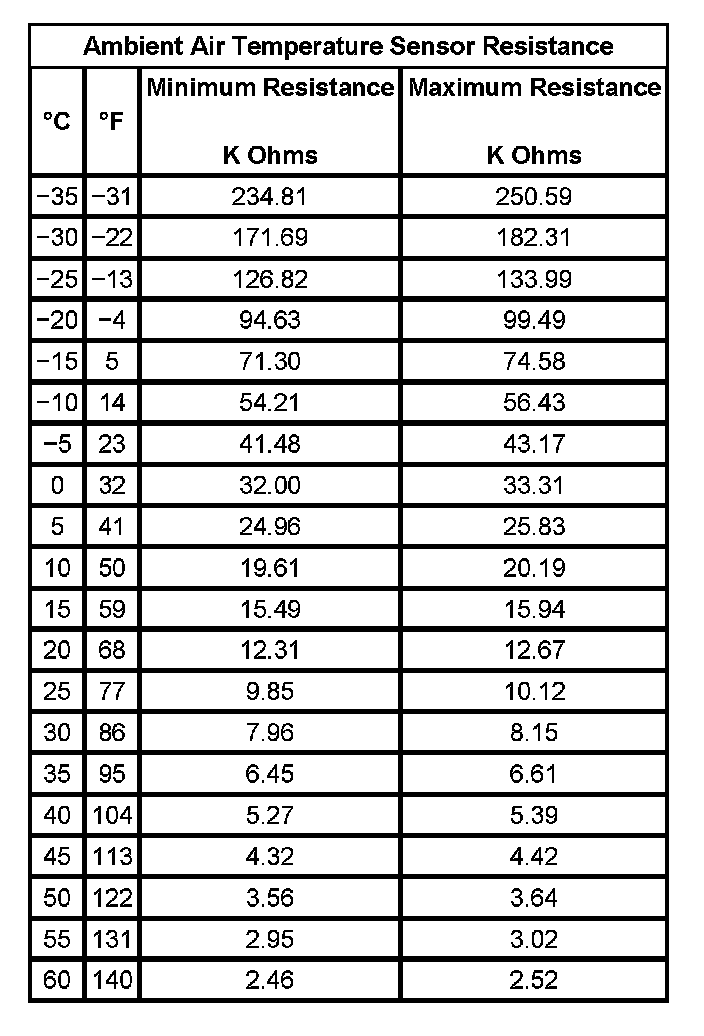 Ambient Air Temperature Sensor Resistance: