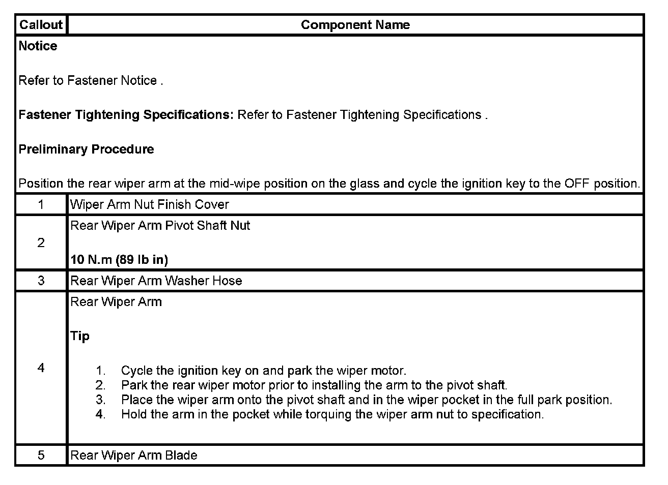 Wiper Arm Replacement - Rear (TrailBlazer SS)