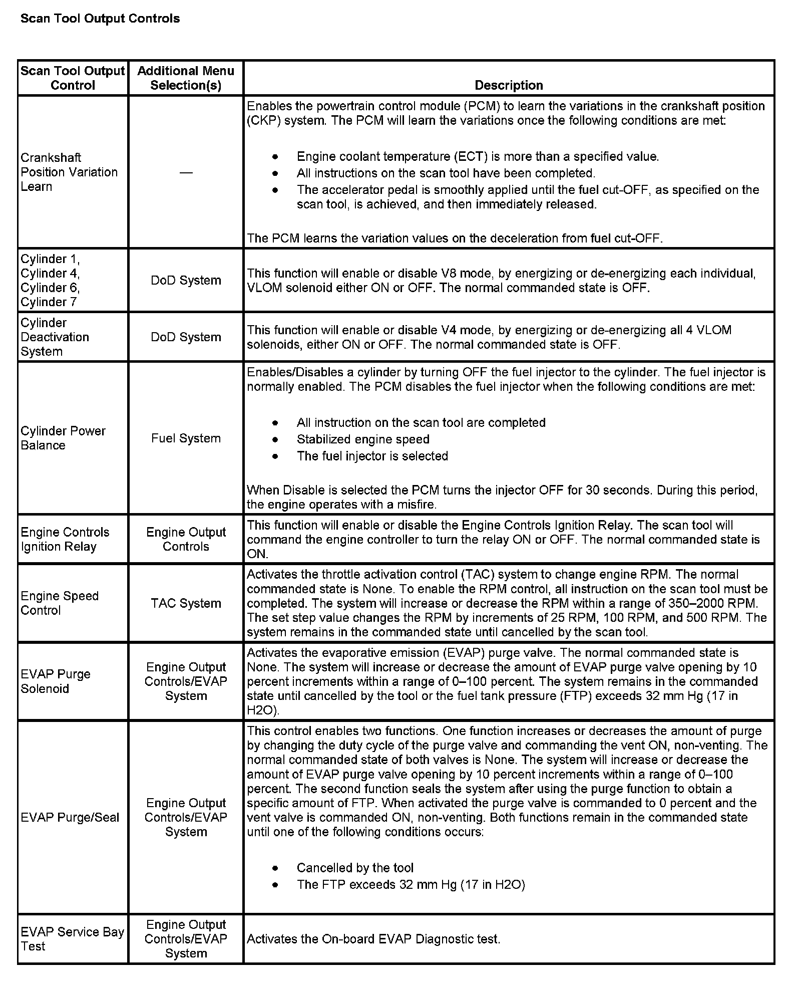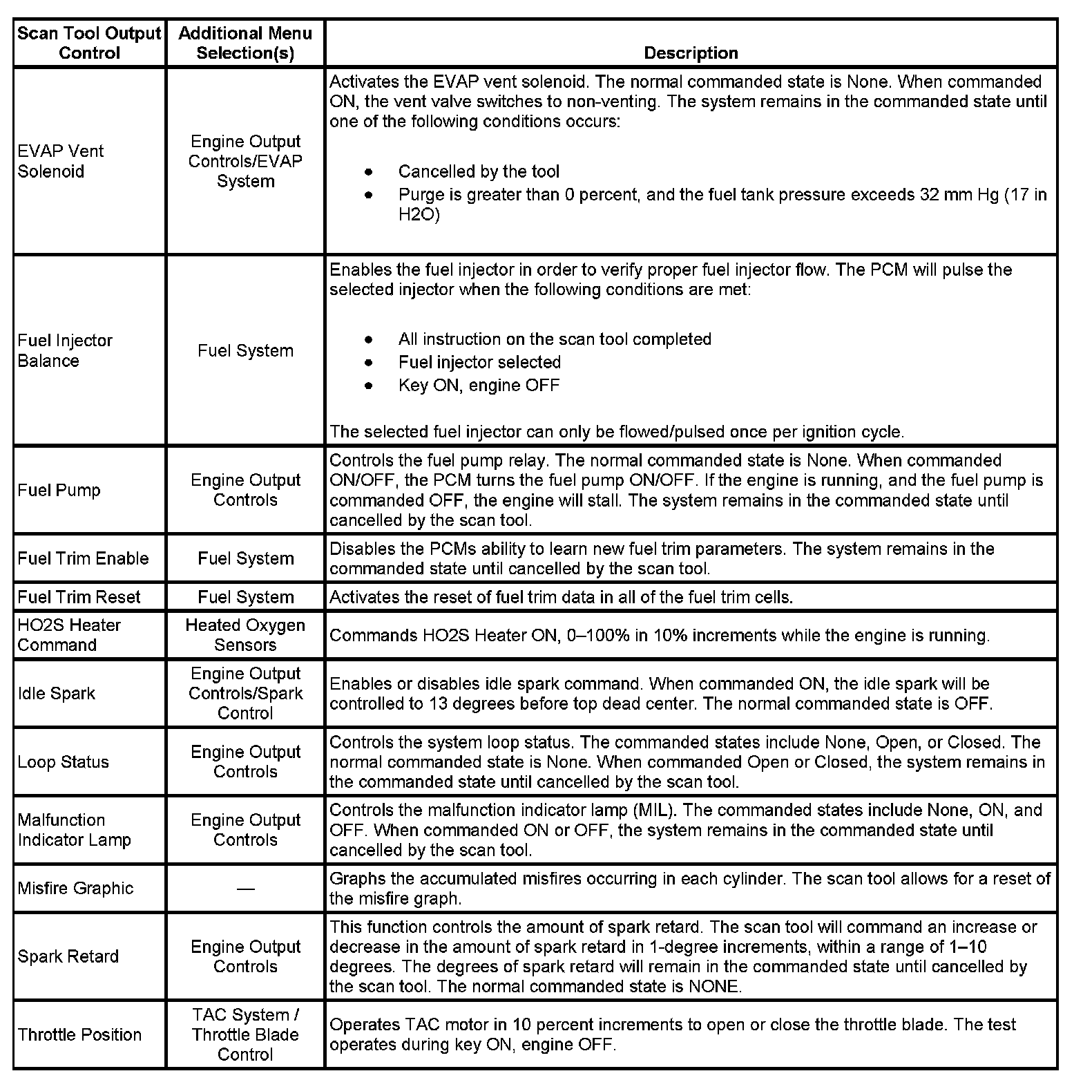 Scan Tool Output Controls