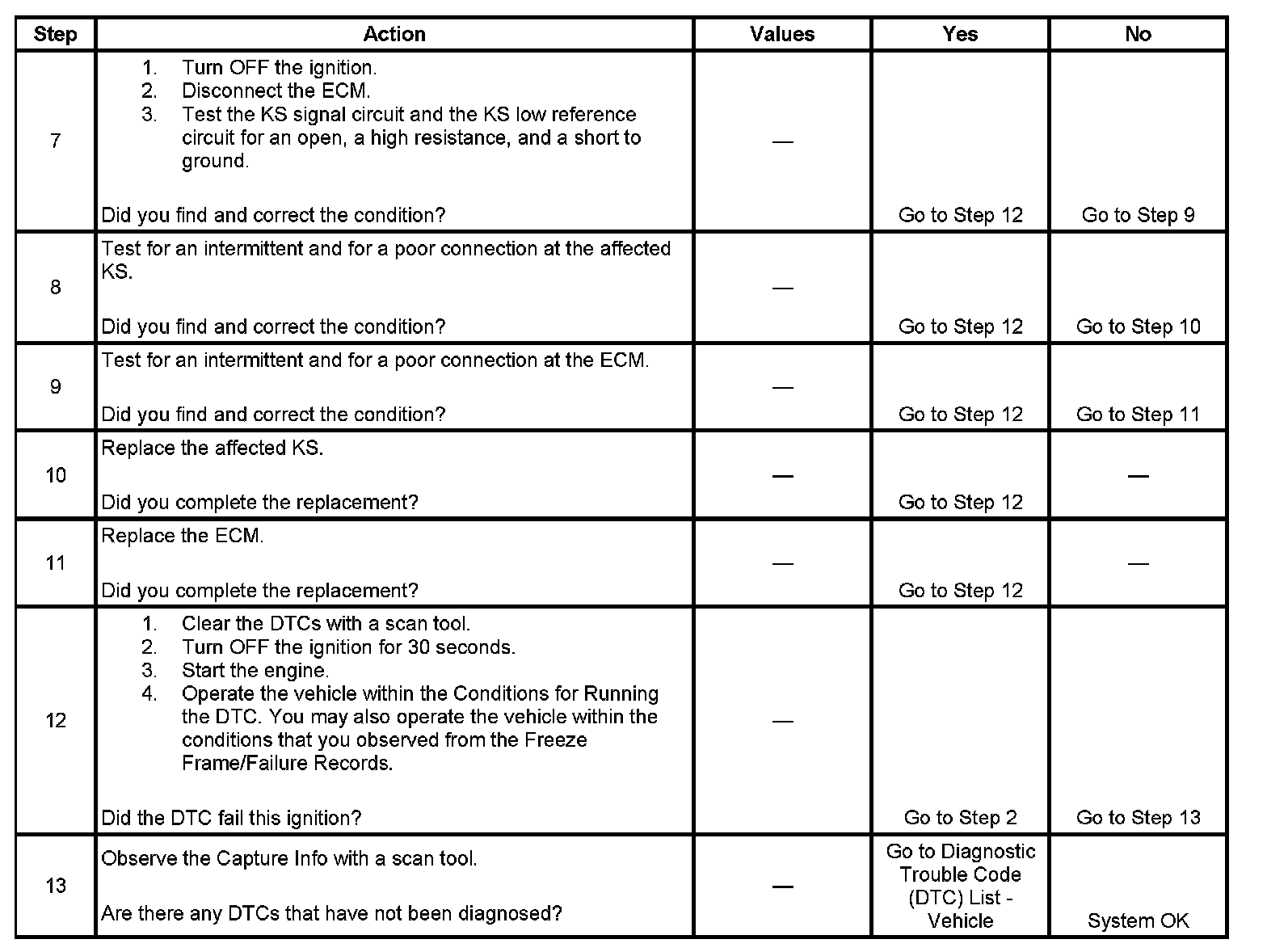 - Inspect the KS for physical damage. A KS that is dropped or damaged may cause a DTC to set.