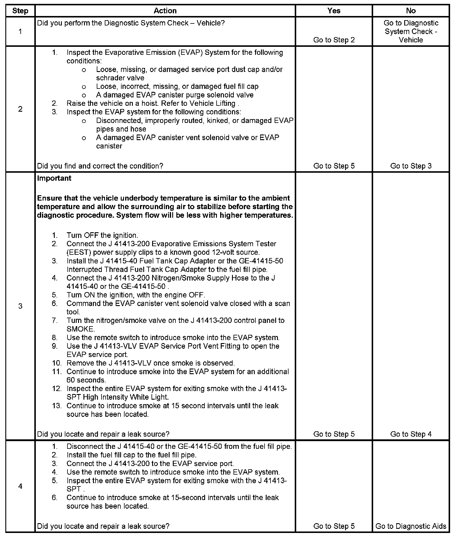 - To help locate intermittent leaks, use the J 41413-200 evaporative emissions system tester (EEST) to introduce smoke into the EVAP system. Move all EVAP components while observing smoke with the J 41413-SPT High Intensity White Light.