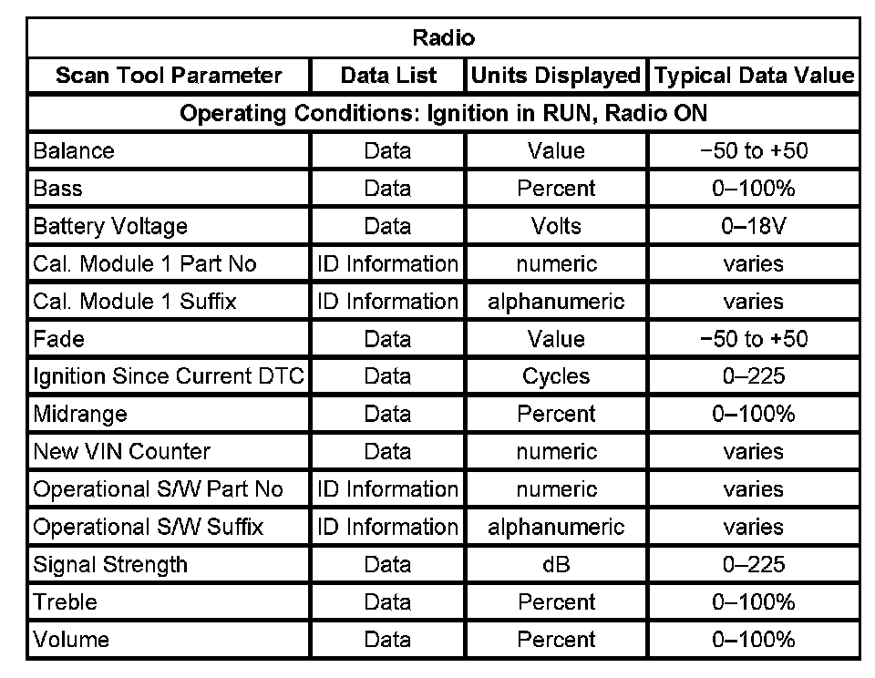 Scan Tool Data List