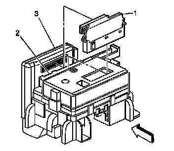 5. Engage the sliding latch fastening the BCM to the rear electrical center. Slide the latch outboard until the locking tab (1) is fully seated.