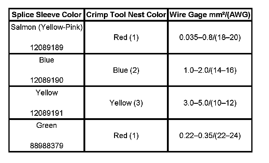 4. Select the proper DuraSeal splice sleeve according to the wire size. Refer to the above table at the beginning of the repair procedure for the color coding of the DuraSeal splice sleeves and the crimp tool nests.