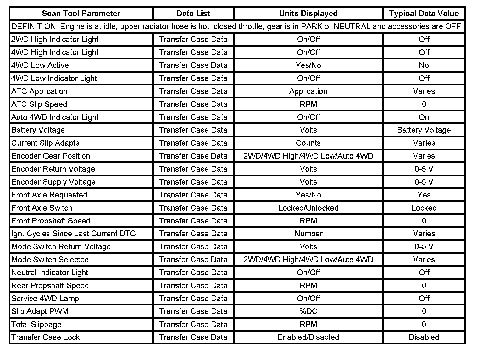 Scan Tool Data List: