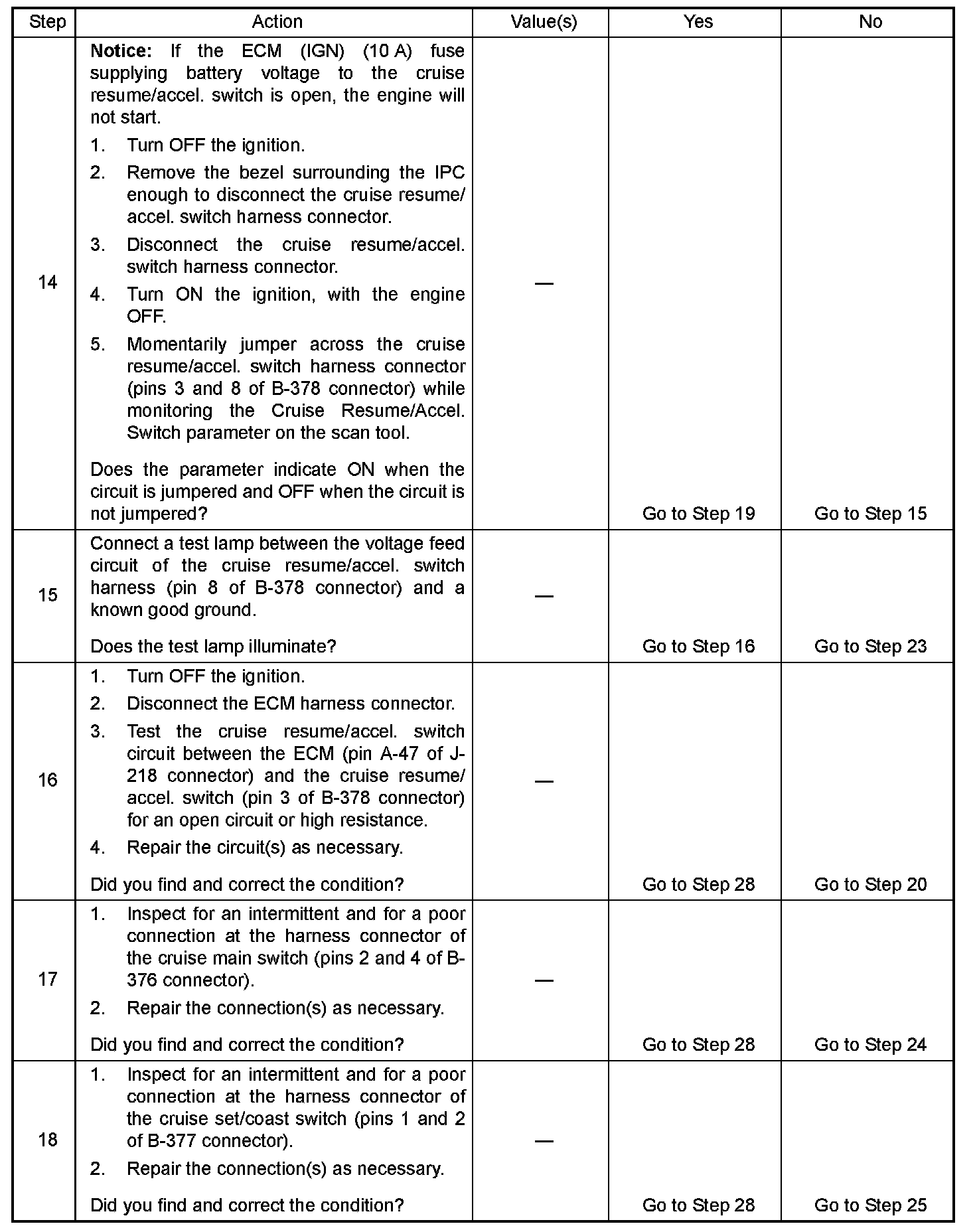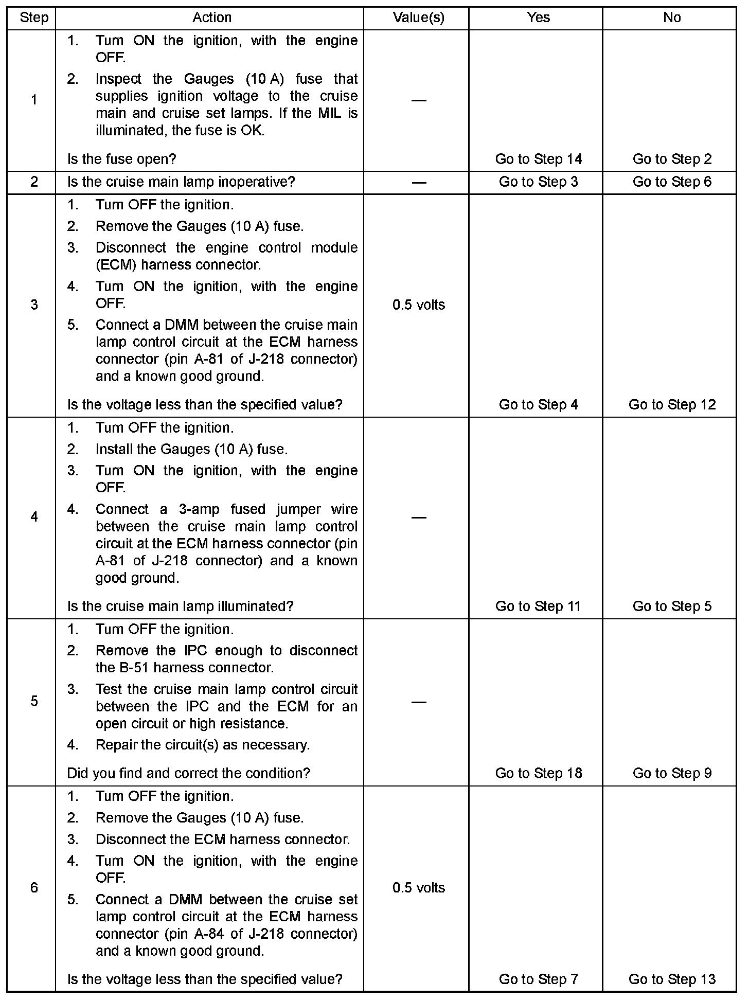 - The DTCs relating to the cruise control system are set.