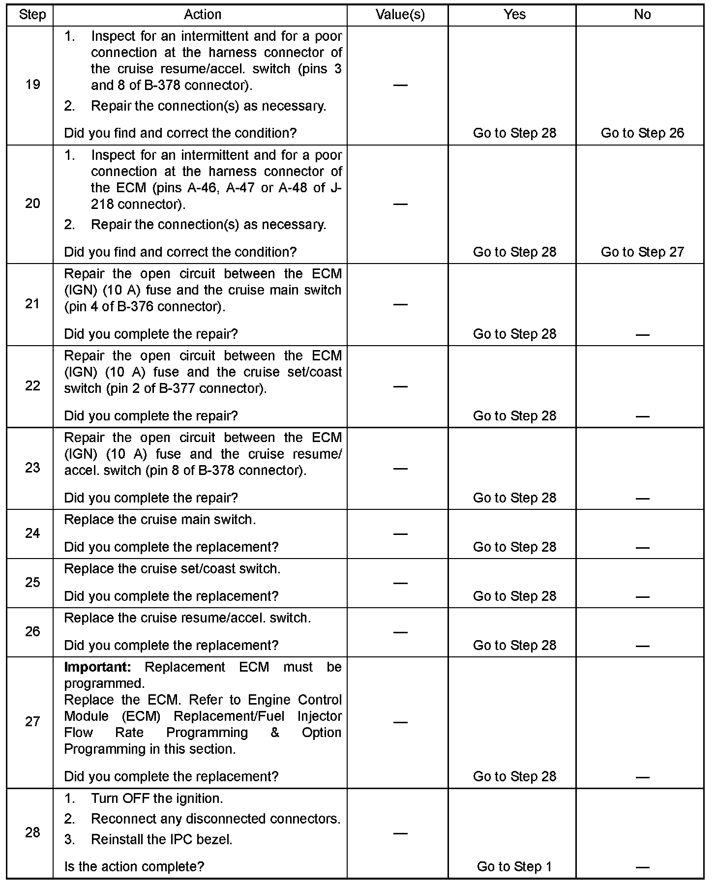 Refer to the Cruise Control Option Programming for ECM programming. Service and Repair