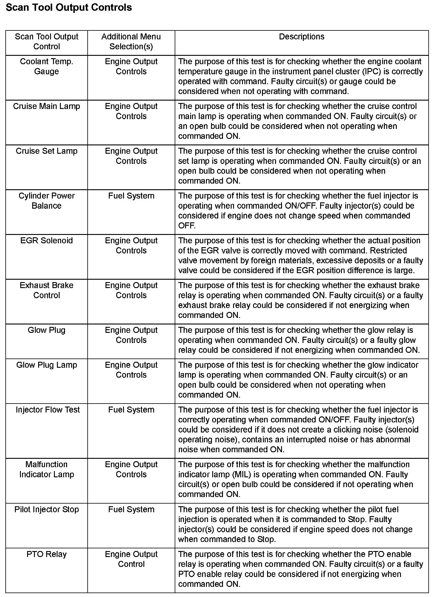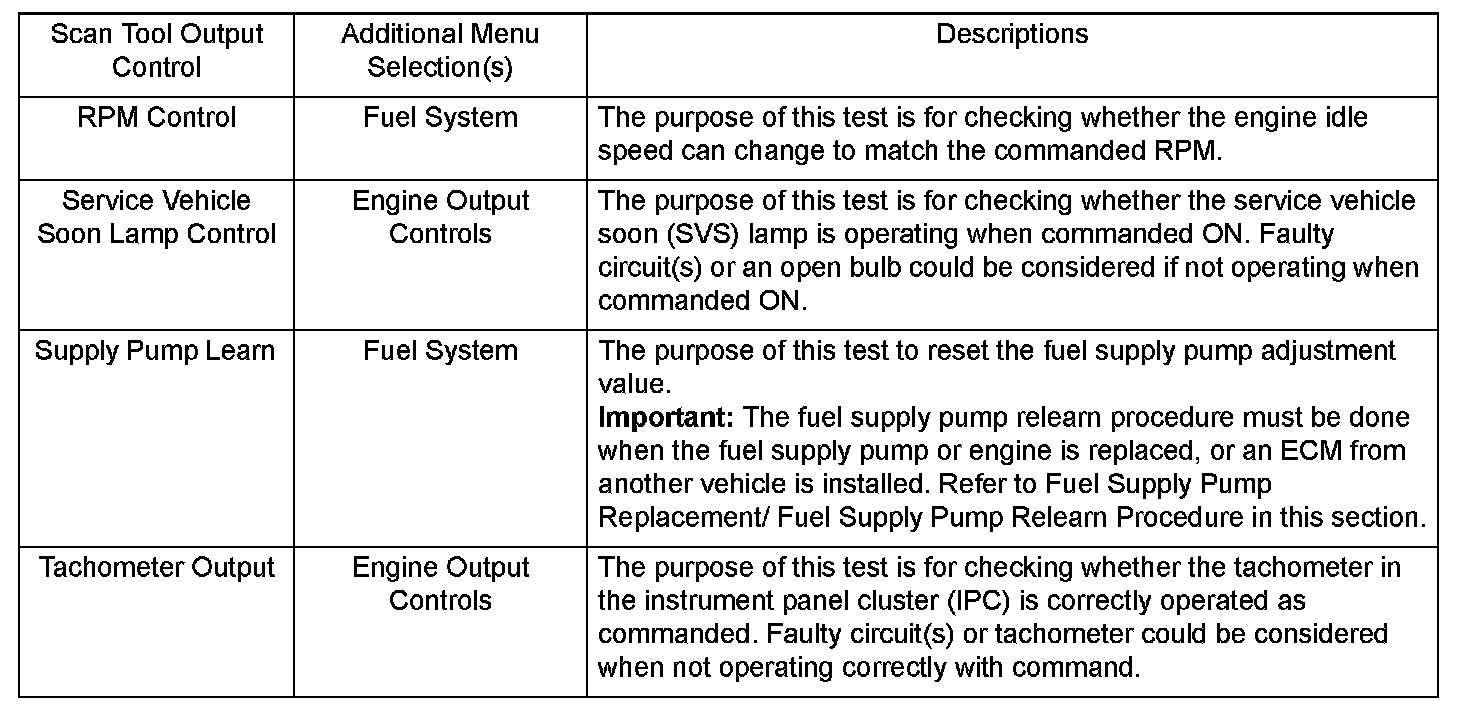 Scan Tool Output Controls
