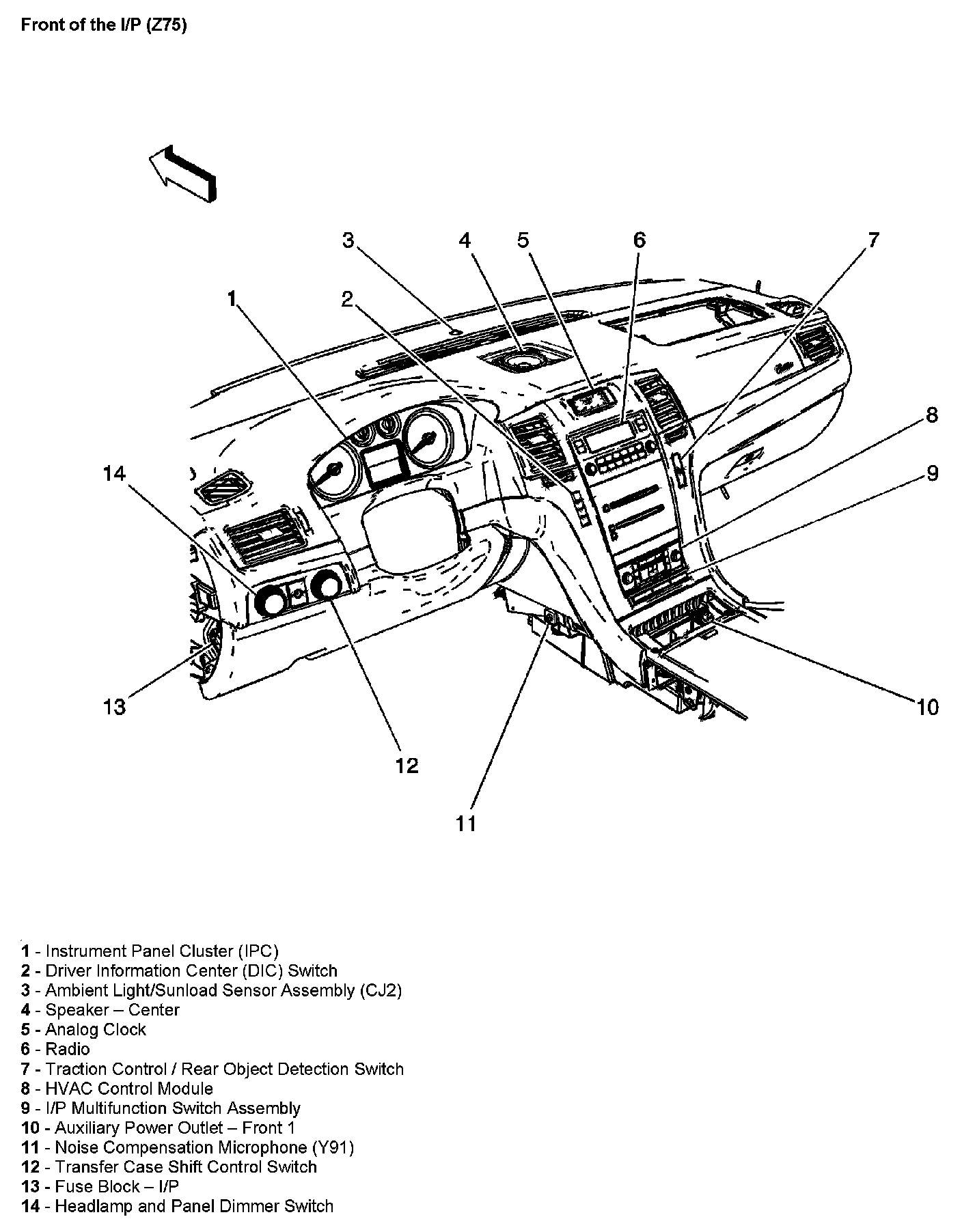 Front of the I/P (With RPO Code Z75)