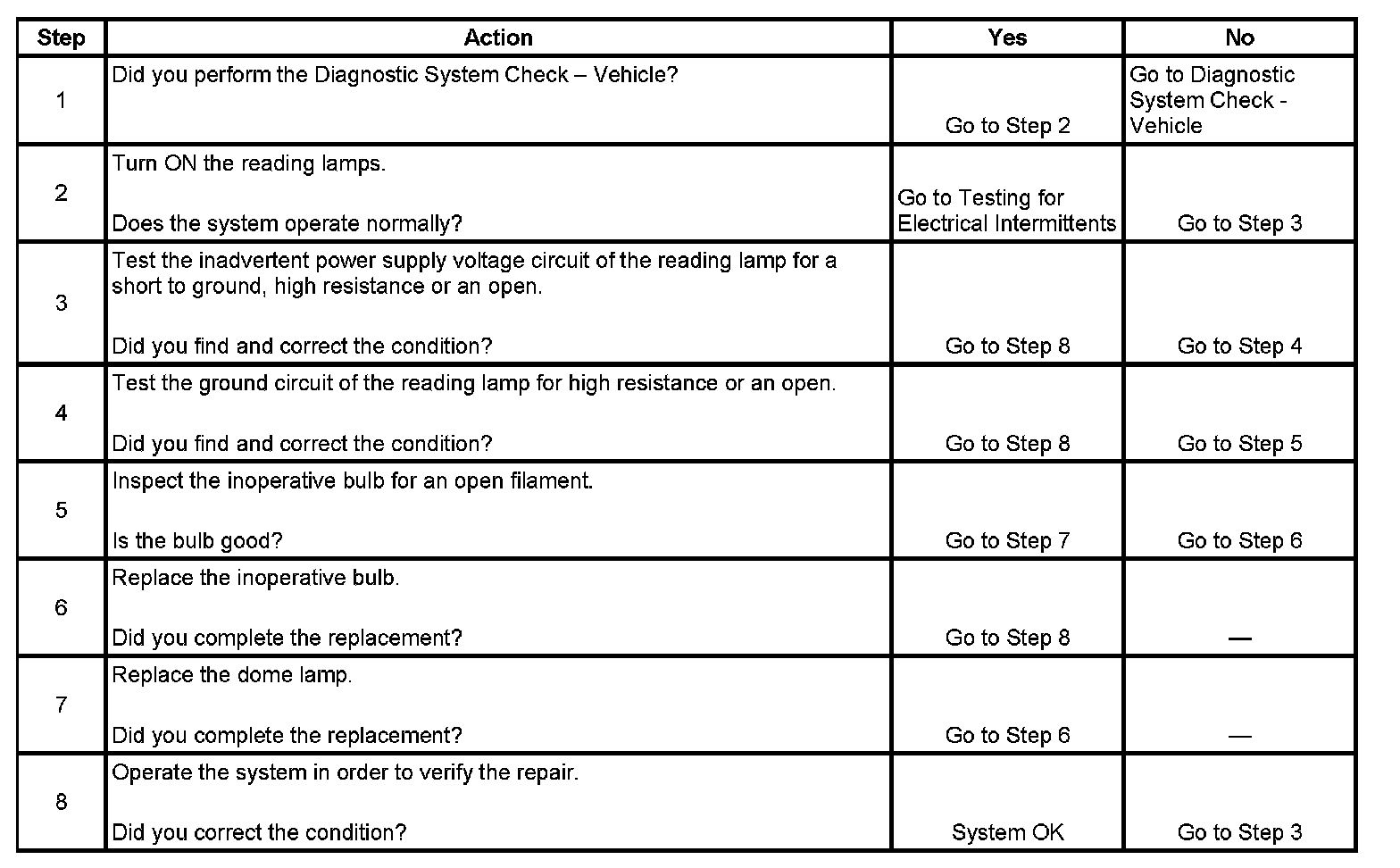 Reading Lamp(s) Inoperative