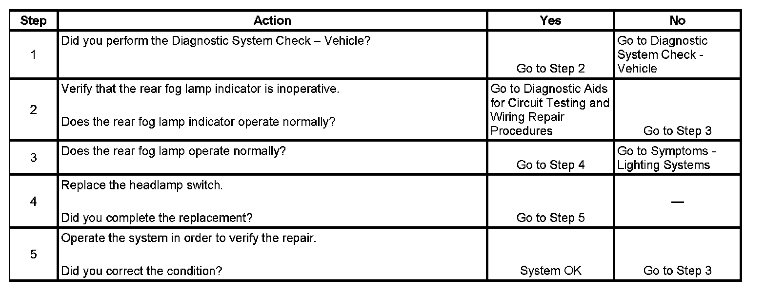 Rear Fog Lamp Indicator Inoperative