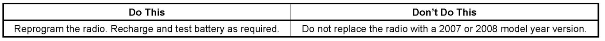 A revised calibration has been developed to address this condition. Technicians are to reprogram the radio using the Service Programming System (SPS) with the latest software available on TIS2WEB. Refer to the Radio Setup procedures in SI. As always, make sure your Tech 2(R) is updated with the latest software version.