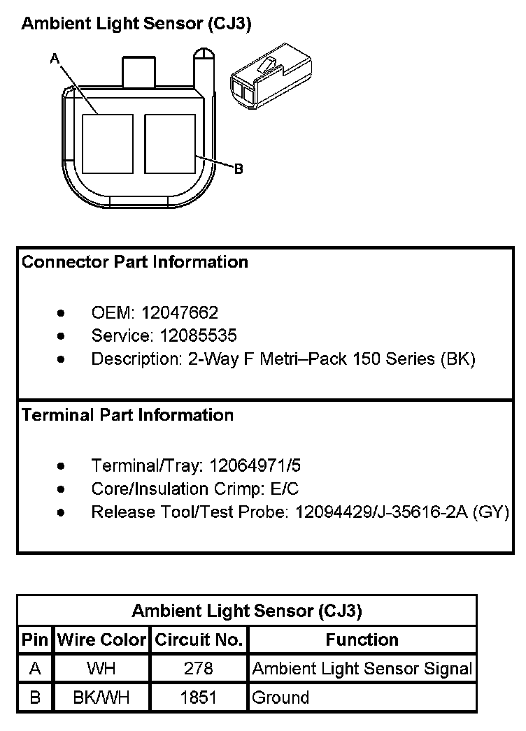 Ambient Light/Sunload Sensor Assembly (With RPO Code CJ2):
