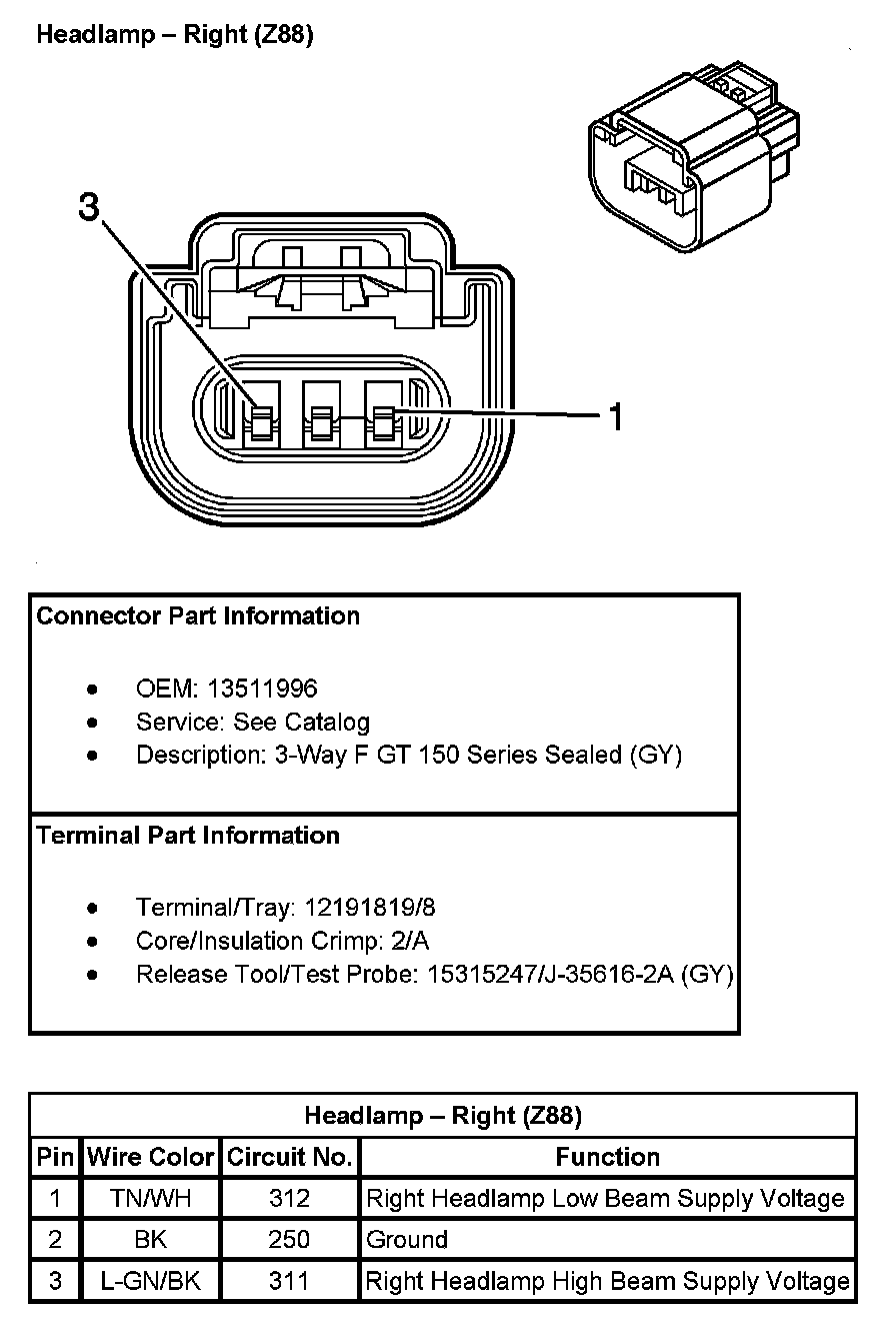 Headlamp - Right (With RPO Code Z88):