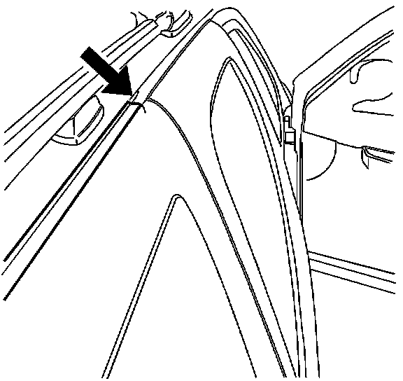 The first item to inspect for is a possible sealer void in the roof ditch molding. Refer to the illustration above.