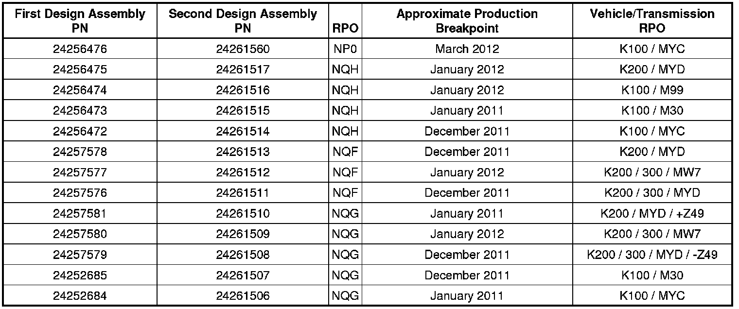 This bulletin is being revised to add the 2013 model year, clarify the information from the previous bulletin and to add data throughout. The document should be reviewed and treated as new information. Please discard Corporate Bulletin Number 12-04-21-001A (Section 04 - Driveline/Axle).
