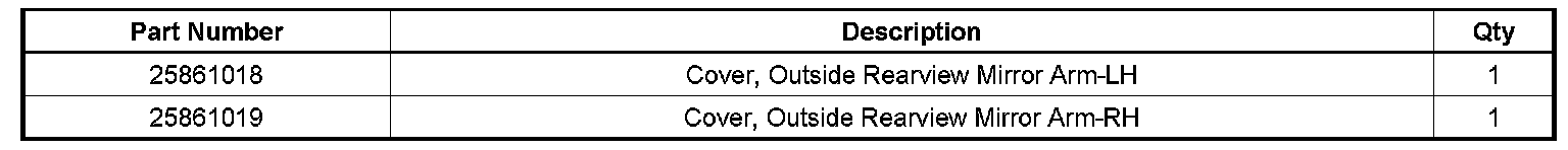 Availability of Replacement Outside Rearview Mirror Arm Covers for RPO DF2 or DPN Wide Load Mirrors