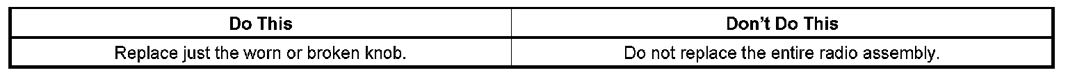 The purpose of this bulletin is to announce that the Navigation Radio tuner and volume knobs are now available for service replacements. Previously, if either of these knobs was worn or broken, the entire radio assembly had to be replaced. The same part number is to be used for either knob. They are identical.