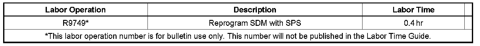 A revised SDM Operating System software has been developed to address this issue. Reprogram the Sensing and Diagnostic Module (SDM) with the controller option described as "SDM Sensing and Diagnostic Module" under Operating System using the TIS2WEB Service Programming System (SPS) application. As always, make sure your Tech 2(R) is updated with the latest software version.