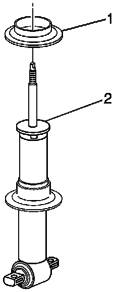 Install the front spring lower insulator (1) on the shock absorber (2).