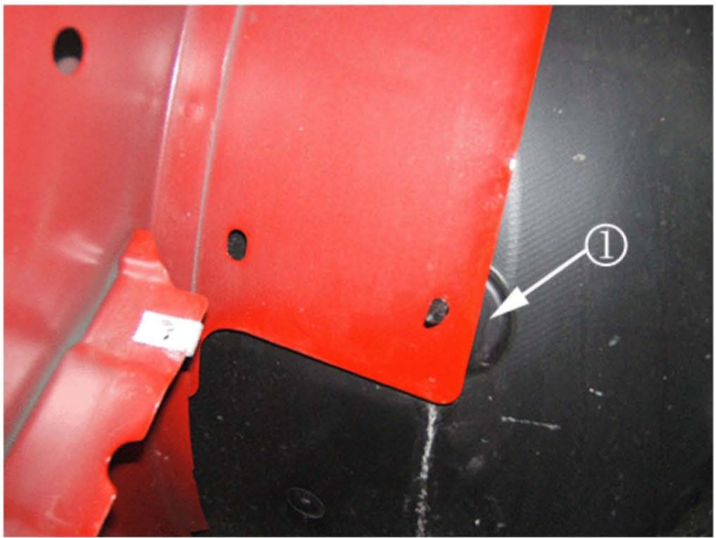 Install the plastic retainer into the right front wheelhouse liner, foam (1) and the fender.