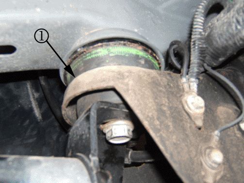 6. Install the new insulator to the bottom of the top portion of the body mount. The picture shows the insulator (1) location after the body mount is reassembled.