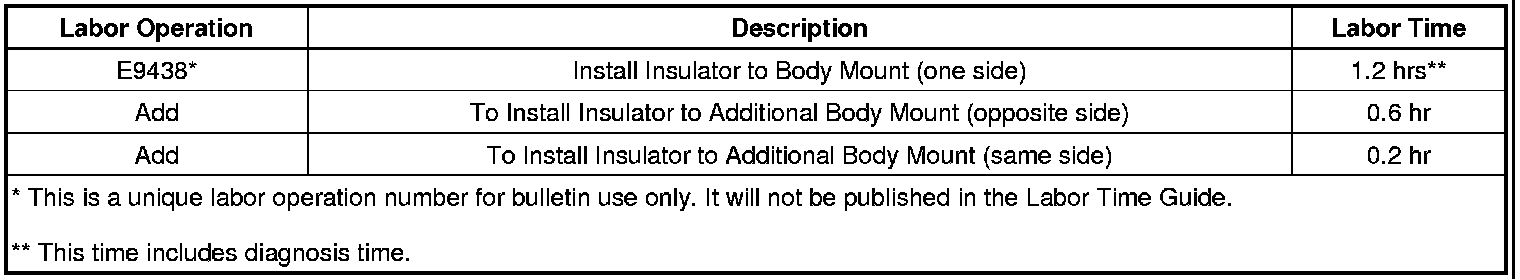 Under certain conditions, normal movement between the frame and the #1, #2 or #3 body mounts may cause this noise to occur.