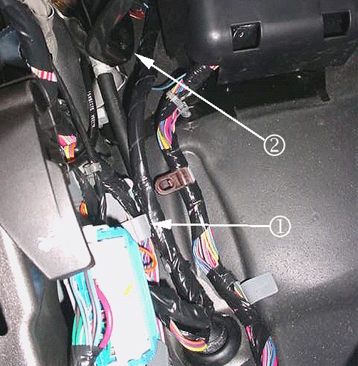 6. Secure the harness by seating the grey offset retaining clip to the dashmat (or brown "buddy clip" if present - usually on SUV's only). Reconnect C202.