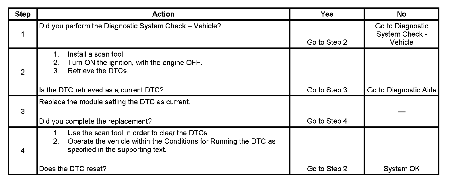 - If this DTC is retrieved as both a current and history DTC, replace the module.