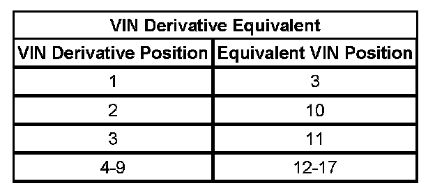 All engines and transmissions are stamped or laser etched with a partial VIN, which was derived from the complete VIN. A VIN derivative contains the following 9 positions: