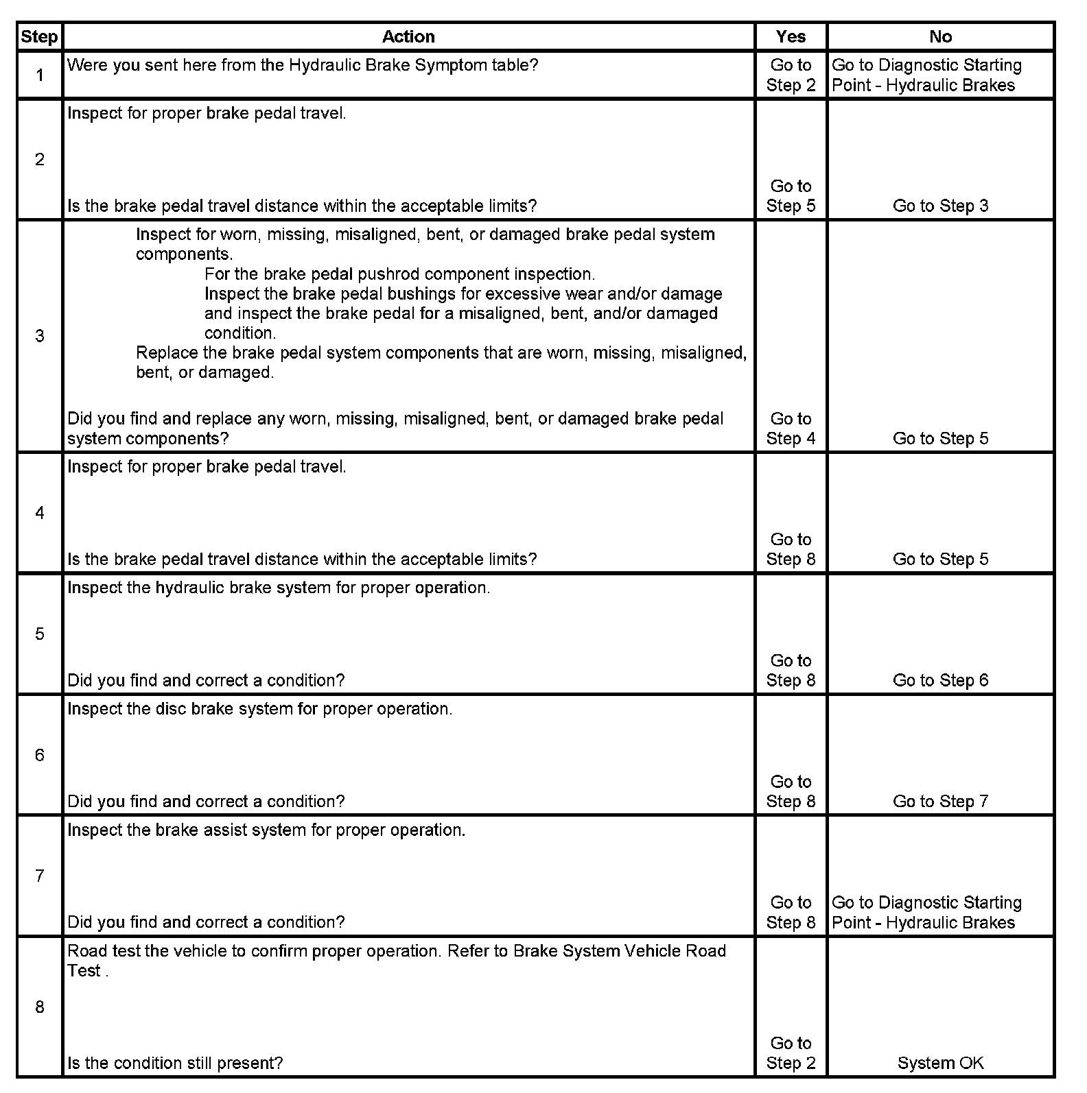 Brake Pedal Excessive Travel