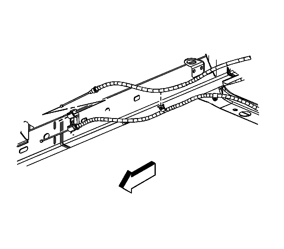 9. Install the park brake cable in the retaining bracket, long wheel base.