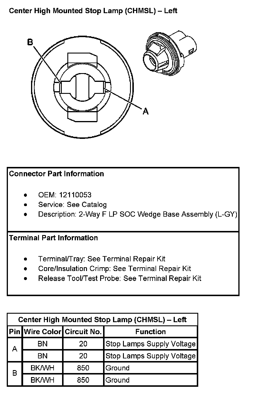 Center High Mounted Stop Lamp (CHMSL) - Left: