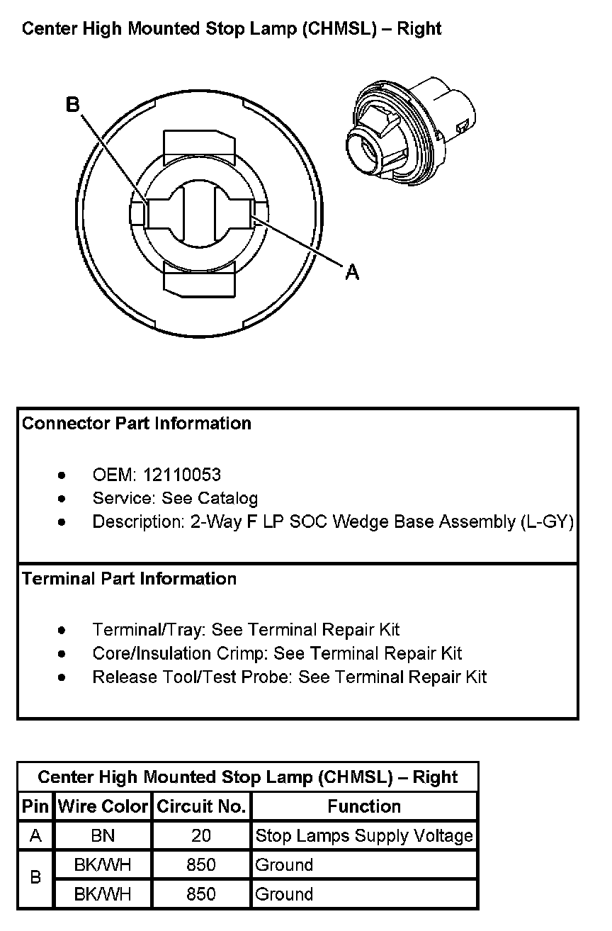 Center High Mounted Stop Lamp (CHMSL) - Right: