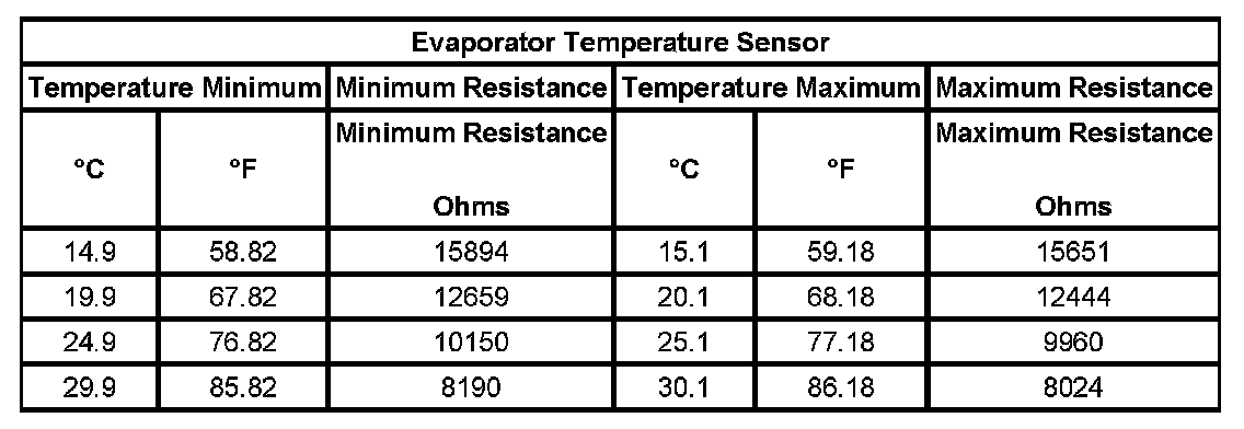 Sensor Resistance Table