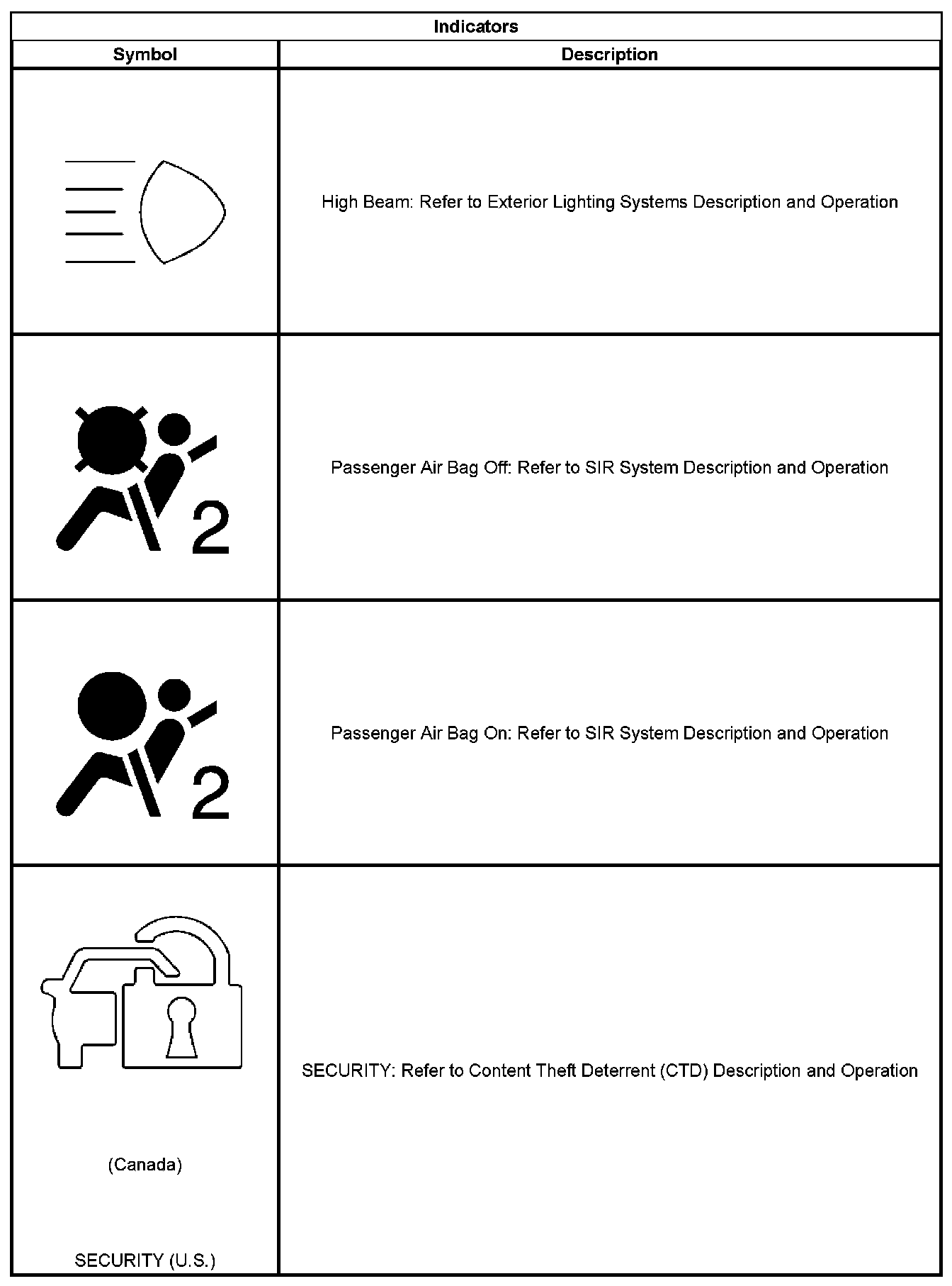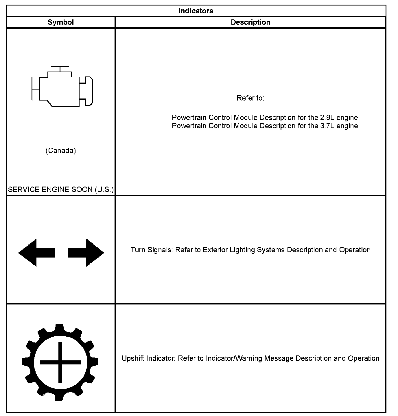 The IPC illuminates the UPSHIFT INDICATOR when the PCM determines that the vehicle should be shifted to the next higher gear. The IPC receives a class 2 message from the PCM requesting illumination.