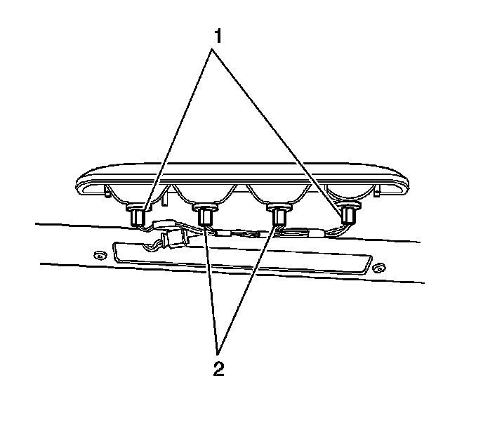 1. Remove the screws that retain the center high-mounted stop lamp (CHMSL) lens to the vehicle.