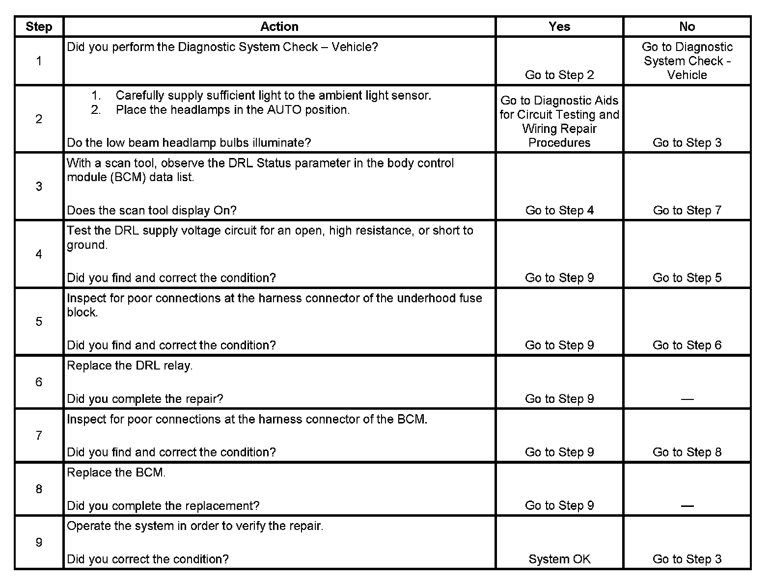 Daytime Running Lamps (DRL) Inoperative