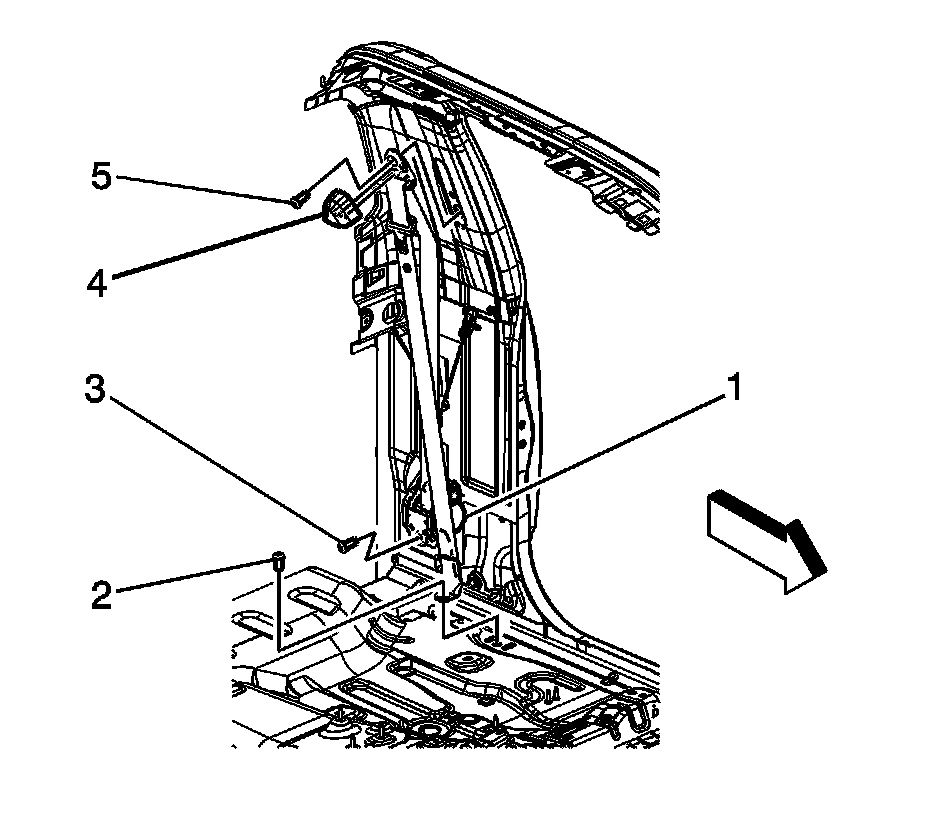 4. Install the front seat belt upper guide with the bolt (5). Ensure that the seat belt webbing is not twisted.