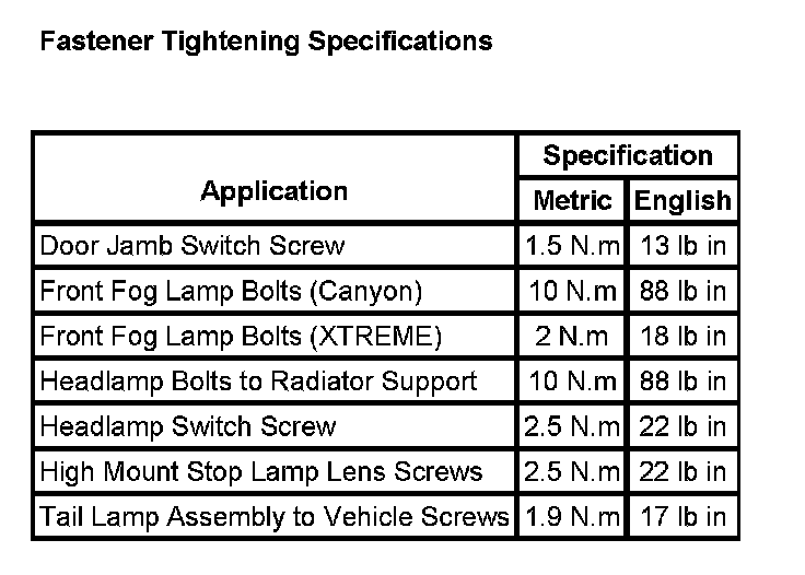 Fastener Tightening Sepcifications: