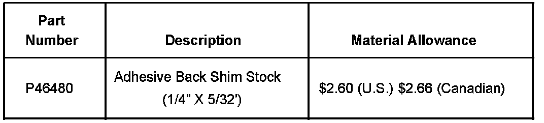 Adhesive Back Shim Stock can be purchased by calling 1-888-YES KENT (1-888-937-5368) or Online at www.kent-automotive.com. This closed cell foam is sold in a 30 foot roll. This roll will service nine vehicles. Please return any unused portion to parts inventory for future use.