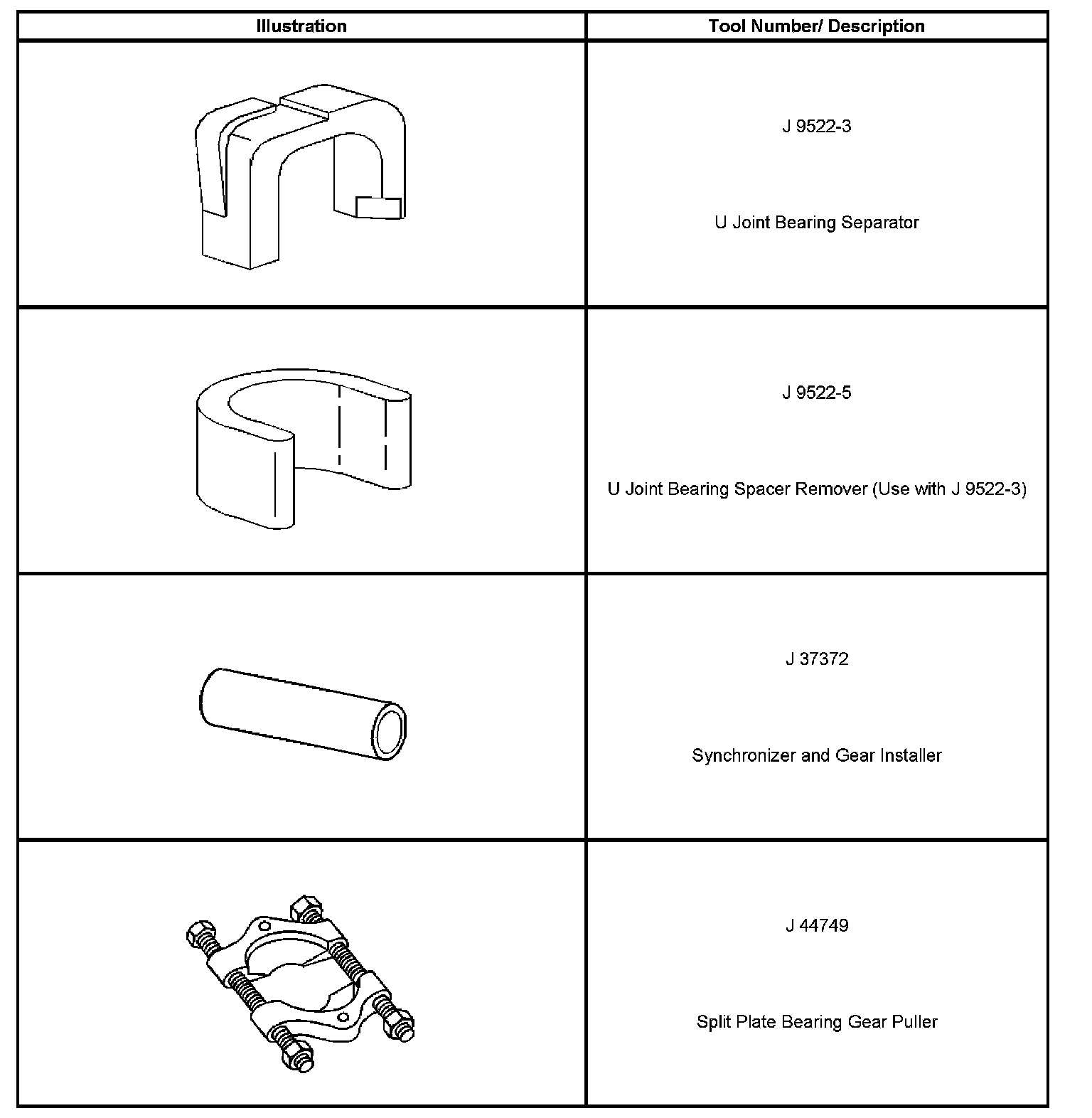 Drive/Propeller Shafts, Bearings and Joints: Tools and Equipment