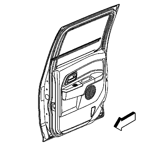2. Remove the rear door outer belt sealing strip by pulling the sealing strip from the rear door pinchweld flange.