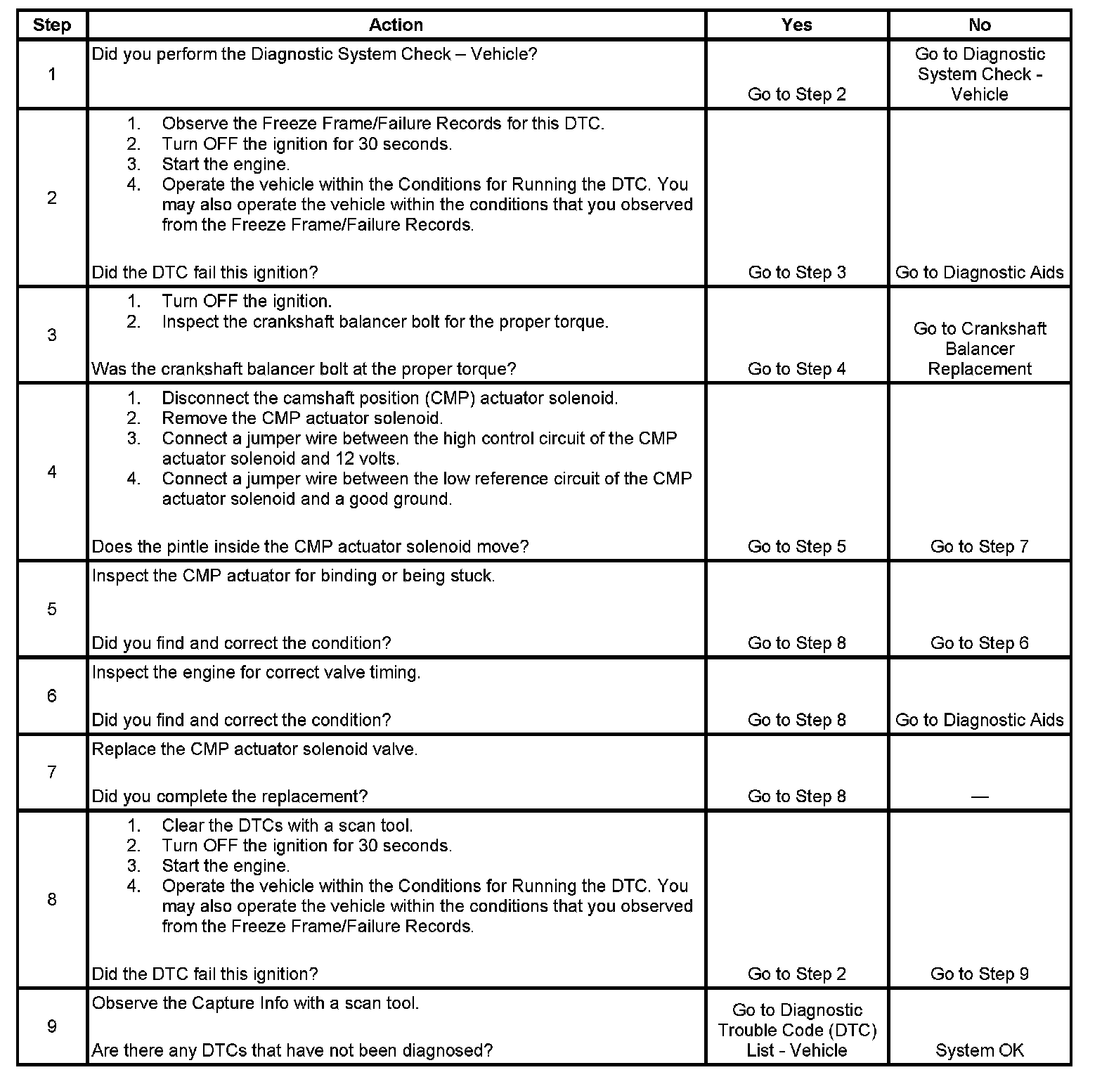Important: The scan tool control of the CMP actuator solenoid is inhibited when DTC P0017 sets.