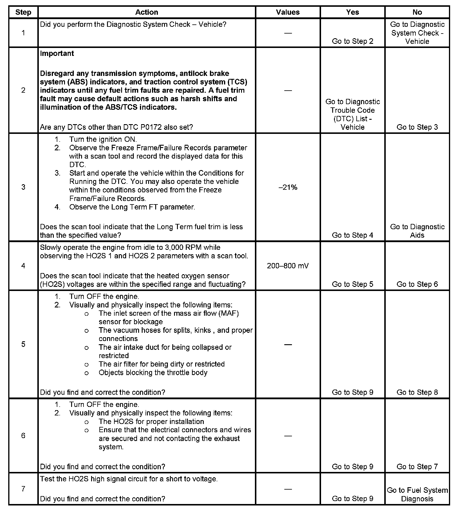 * DTC P0172 runs continuously once the above conditions are met.