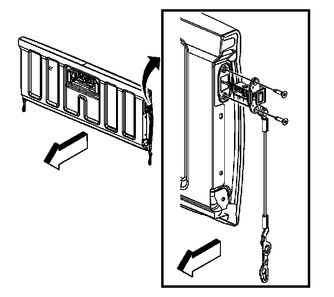 1. Install the latch/support cable assembly to the endgate, ensuring the latch rod is oriented correct to the endgate handle.
