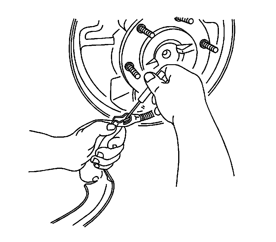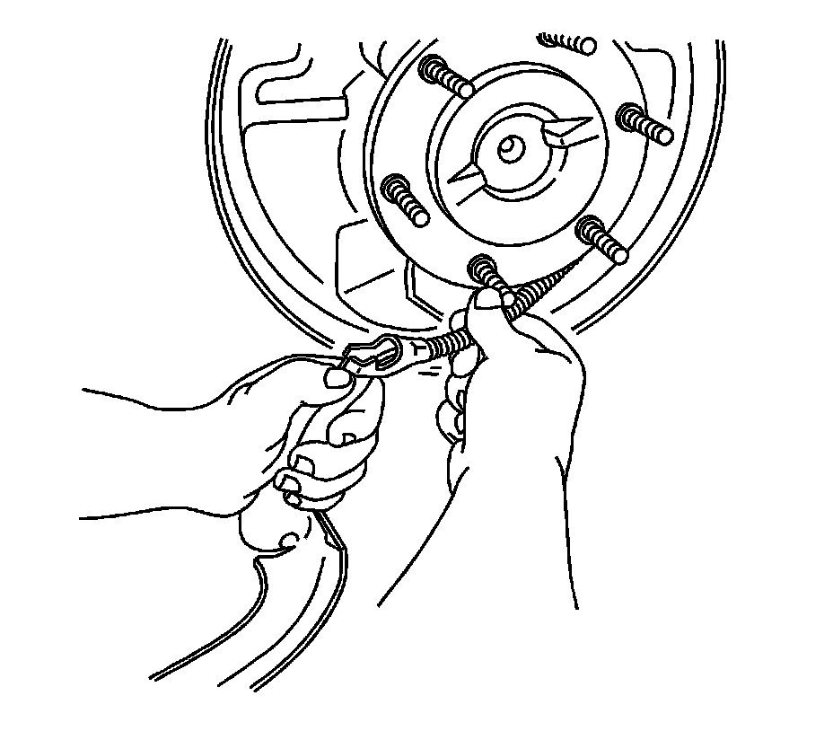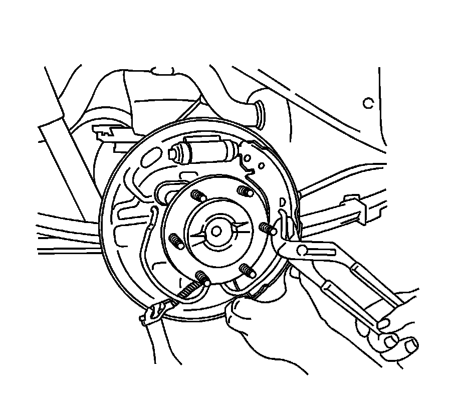 Important: Before removing the brake return spring, adjust the brake shoes to the lowest position. This will reduce the tension on the retractor spring.