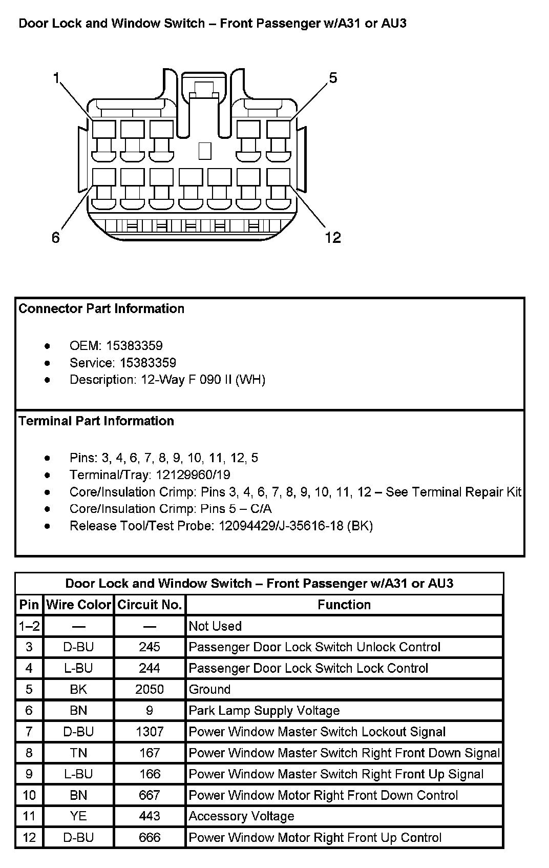 Door Lock And Window Switch - Front Passenger (With RPO Code A31 Or AU3):